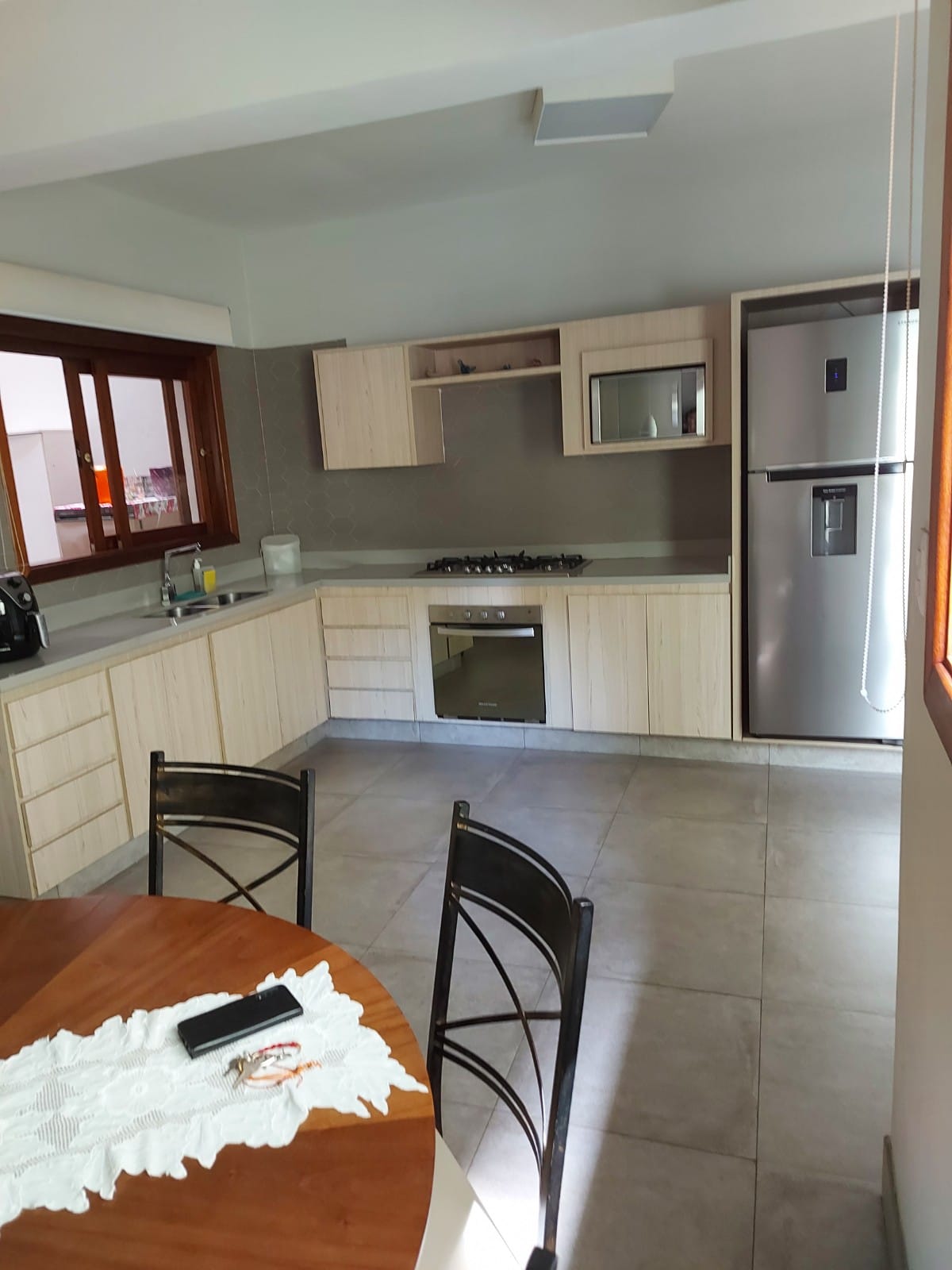 Casa que possui 03 dormitórios, sendo 02 suítes, 02 salas, cozinha com copa com armários, lavanderia, 01 vaga de garagem ao ar livre e 01 vaga de garagem coberta, salão com pia e banheiro e corredor.