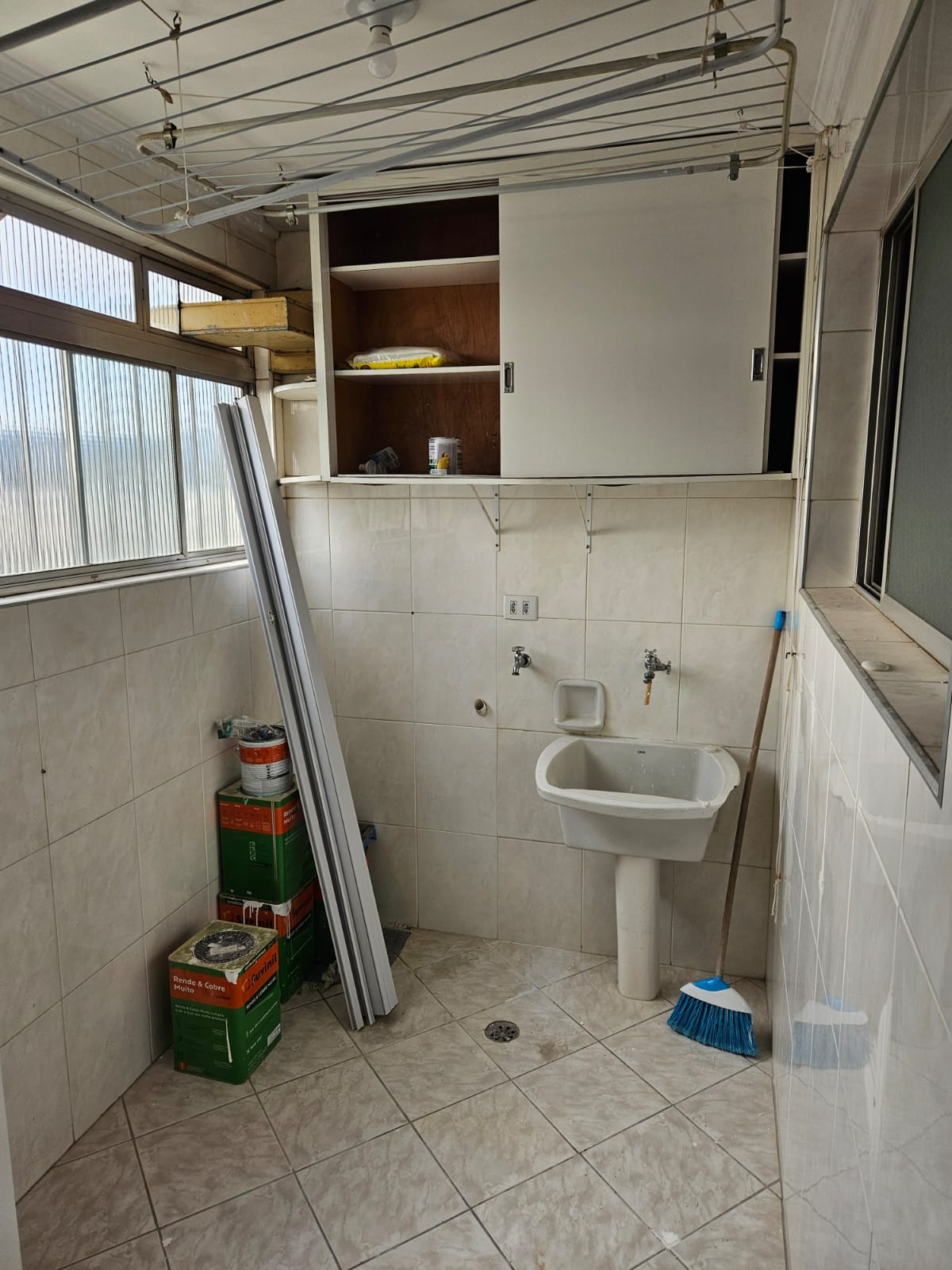 Detalhes sobre o imóvel: 02 dormitórios com armários embutidos com o 3º. dormitório reversível, sala de 02 ambientes (sala de jantar e de televisão), a sala de televisão possui piso elevado em cerâmica e acabamento em sanca de gesso com lâmpadas de cróica, cozinha com armários embutidos de madeira, pia em granito, 02 torneiras (01 delas é elétrica), janela grande com vidros, lava-louças, 02 banheiros que possuem "box" com vidro transparente e chuveiro, pia de granito branco com gabinete, vaso sanitário com espelho, piso em cerâmica, corredor de distribuição para quartos e banheiros, área de serviço com tanque branco, armários embutidos acima do tanque, torneiras, armário de madeira branco longitudinal na entrada da lavanderia, varal suspenso, "hall" de entrada que possui uma porta para cozinha e um espaço vazado para as salas. Com exceção de um dos dormitórios, todos os pisos são de cerâmica. |